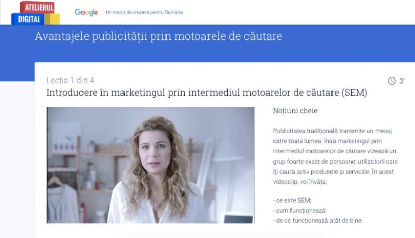 Nu costă nimic și nu ai nevoie decât de o adresă de email cu care să îți faci un cont, să-ți definești obiectivele (dezvoltarea unei companii, a propriei cariere sau pură curiozitate) și să primești un plan personal de învățare pe care să îl parcurgi în ritmul tău. „Este o cerere tot mai mare de activități educaționale. Feedback-ul este că mediul digital e tot mai complex iar oamenii nu știu de unde să înceapă și cum să folosească toate aceste instrumente”, spune Răzvan Iordache, Marketing Manager Google România. Lecțiile video de câteva minute, în limba română, sunt însoțite de scurte teste care să îți permită fixarea informației. După ce vei parcurge toate lecțiile propuse vei putea susține un test mai serios, după promovarea căruia vei obține și o certificare din partea Google și IAB Europe pe care s-o atașezi CV-ului când vei fi în căutarea unui job.
