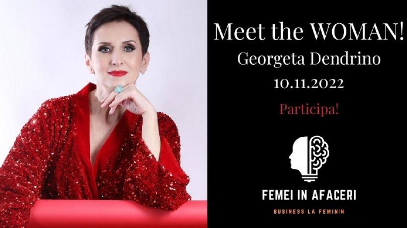 FEMEI ÎN AFACERI te invită la o nouă ediție a evenimentului Meet the WOMAN! în data de 10 noiembrie 2022, o ediție aniversară, având-o ca invitată în calitate de speaker pe Georgeta Dendrino, Executive Coach, Director General al Interact Business Communication, membră a boardului pentru Asociația pentru Valori în Educație, Romanian Gifted School și Vice President Diversity and Inclusion la European Mentoring and Coaching Council (EMCC).