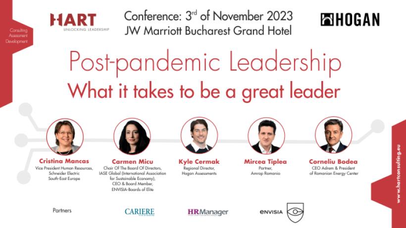 Pe 3 noiembrie, la Hotel Marriott din București, Hart Consulting și Hogan Assessments vor organiza conferința pe tema: “Leadershipul post-pandemie: de ce ai nevoie pentru a fi un bun lider?”