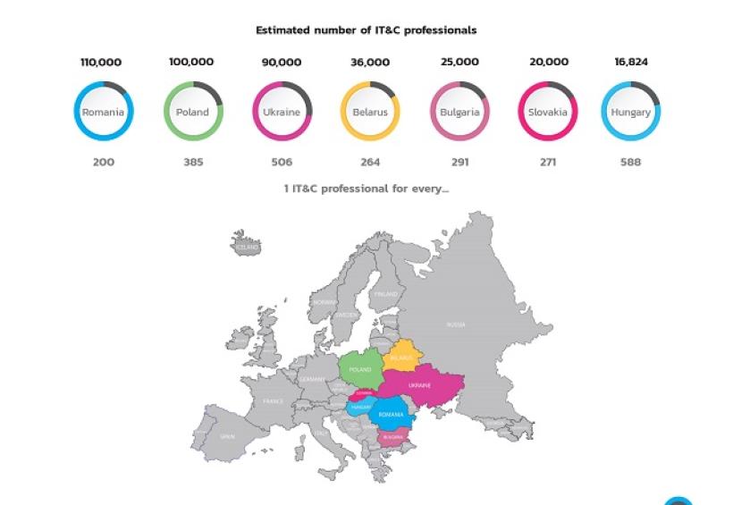Specialiștii sunt răspândiți în 12 orașe, cu 4 hub-uri mari, 2 secundare și 6 centre mici- Craiova, Galați, Pitesti, Ploiesti, Constanta, Targu-Mures. Acestea sunt oraşe care se află acum pe harta marilor angajatori din IT şi ar putea absorbi un procent important din creşterea din următorii ani în condiţiile în care multinaţionalele caută alternative la aglomeratele şi mai scumpele centre din Bucureşti, Timişoara sau Cluj-Napoca. Universitățile din cele șase oraşe furnizează anual aproximativ 800 de absolvenţi de discipline IT&C, conform datelor colectate de compania de recrutare și consultanţă.