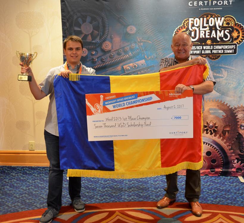 Reprezentantul României s-a calificat la finala mondială în urma competiției naționale care a avut loc la sediul Microsoft România din București, în data de 28 aprilie, obținând un scor perfect, de 1.000 din 1.000 de puncte și un timp de finalizare al examenului de 11 minute și 36 de secunde, din cele 60 de minute puse la dispoziție de organizatori.